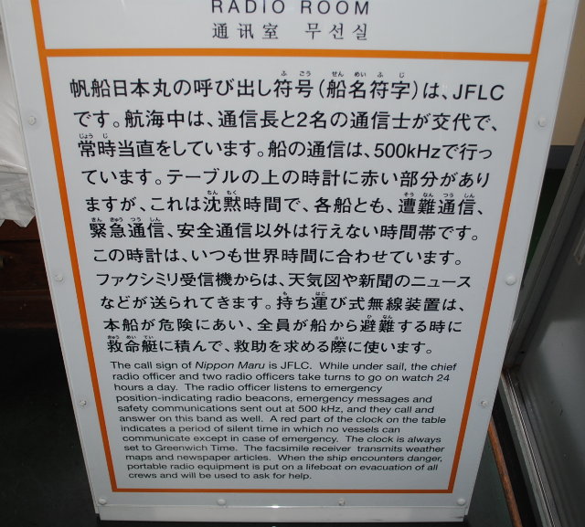 横浜港に係留されている帆船「日本丸」の無線機室の写真を撮りに行ってきました。船内の解説掲示によると、1930(s5)年に建造され、1984(s59)年に引退するまでのまでの54年間に、11,500名もの実習生を育てたとありました。