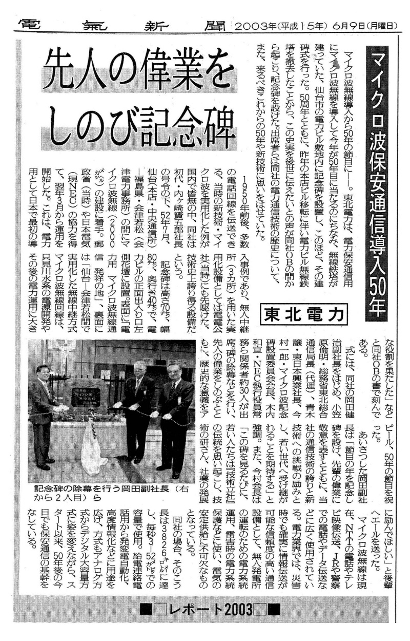 マイクロ無線記念碑の記録